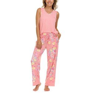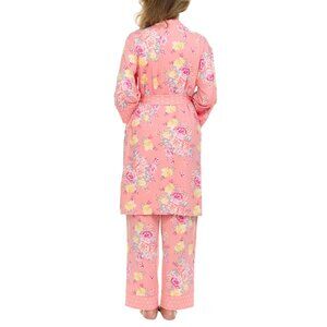 Flora Nikrooz Womens 3 Piece PJ Set Pink Floral Microfiber Wide Leg