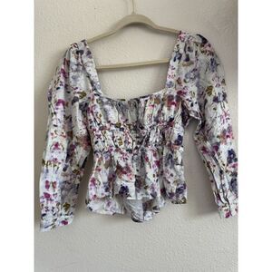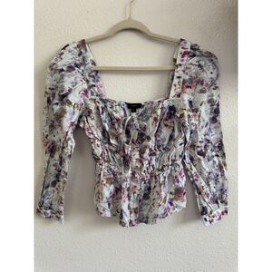 Flora Obscura J.Crew Cinched-Waist Square Neck Top in Kaleidoscope Floral Size 6