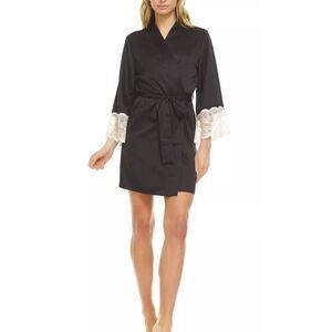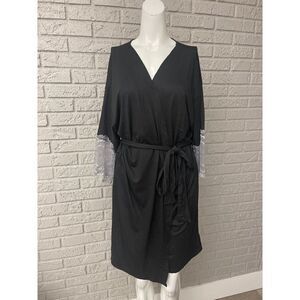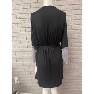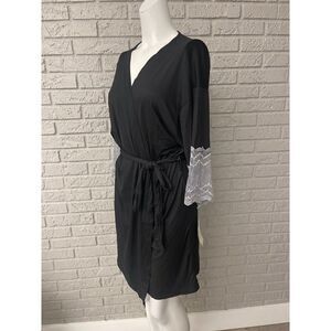 Flora by Flora Nikrooz Black & Silver Lace Robe Size L NWT