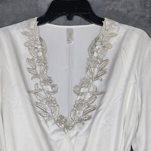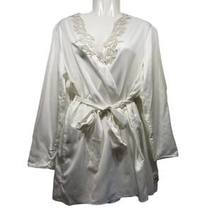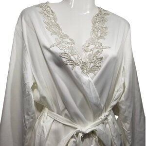 Flora by Flora Nikrooz Satin Ivory Stella Wrap Robe Lace Trim Small Medium