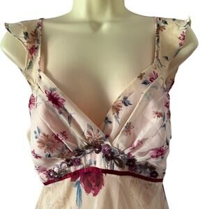 Flora by Flora Nikrooz Size M Floral Print Crinkle Chiffon Long Nightgown