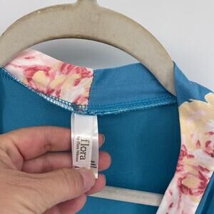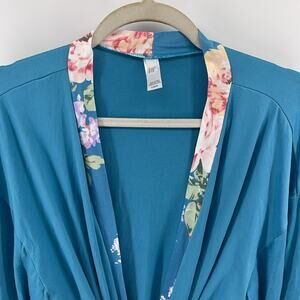 Flora by Flora Nikrooz floral trim jersey knit super soft wrap bath robe sz L