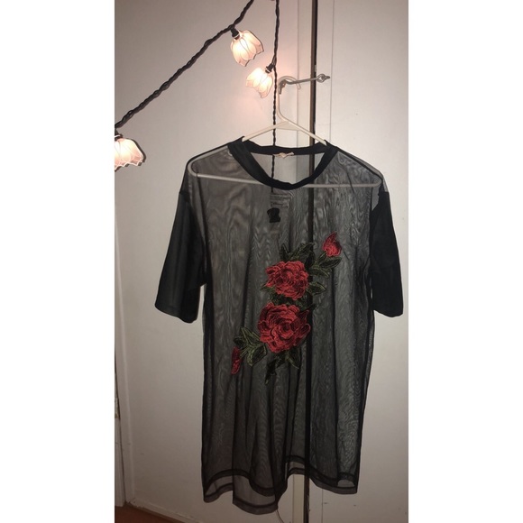 See through blouse with a gorgeous Rose. Perfect to go over a black crop top or black dress to go clubbing in.