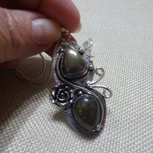 Floral "APACHE PYRITE & LABRADORITE" Handmade Sterling Pendant/Chain #595B