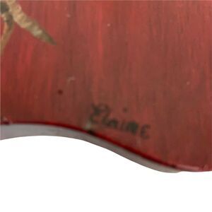 Vintage 70s Red Floral Apple Shape Hand Painted Decorative Wooden Piece
