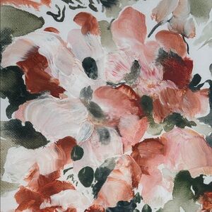 Enhance your space with this beautiful floral art print. Featuring soft pinkish orange and green tones, this piece adds a touch of elegance to any room.