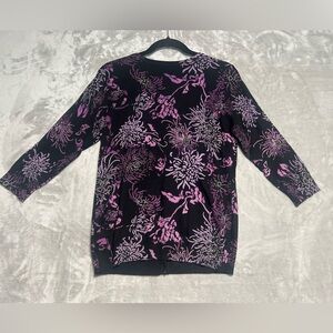 Floral Artsy 3/4 Sleeve Cardigan Sweater Purple Librarian No Size