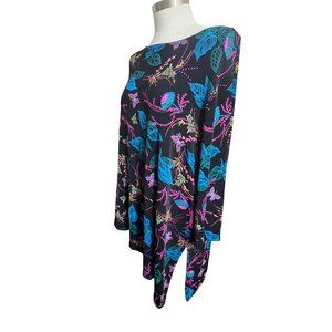 Floral Asymmetrical Hem Tunic Top Black Pink Blue Butterfly Size 3X CM2009