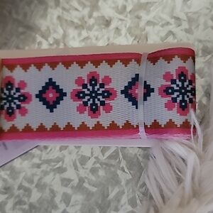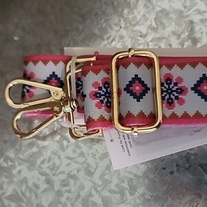 Nwt pink and red floral guitar style bag strap. 1.5" wide. gold hardware