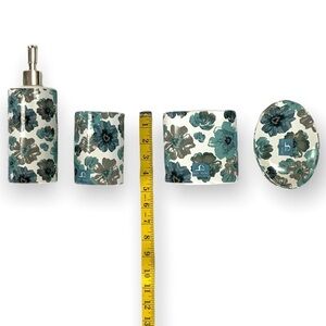 Floral Bath 4 Piece Accessory Ceramic Set Sun Splash Collection White Blue Clay Grey Multi Color