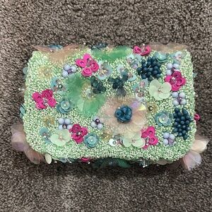 Charming floral beaded clutch with vibrant colors. Perfect for adding a pop of color to any outfit. New, never worn very rare