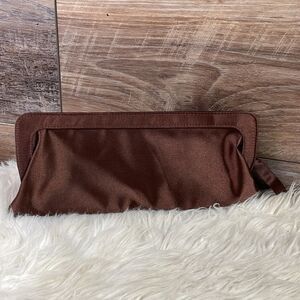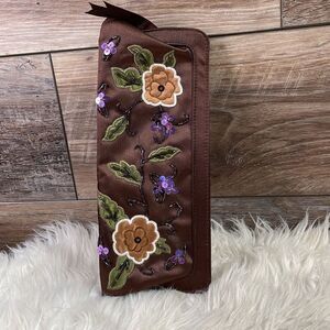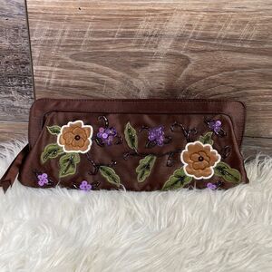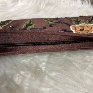 Floral Beaded and Embroidered Satin Clutch Purse, Brown Earth Tones