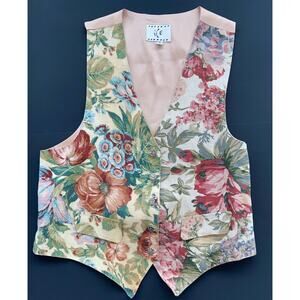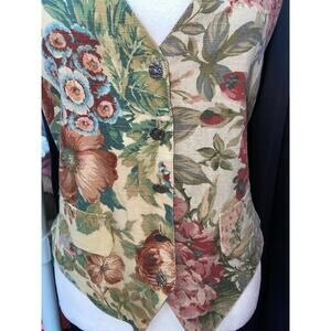 Floral Beautiful Vintage Cotton Fabric Vest, Size Small, Pre-Owned