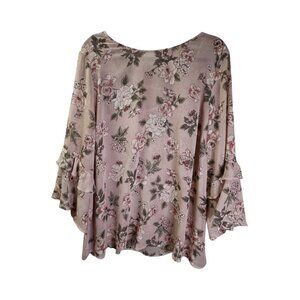 Floral Bell Sleeve Top Blush Pink Plus Size 3 By Torrid Lightweight Flowy Womens