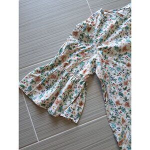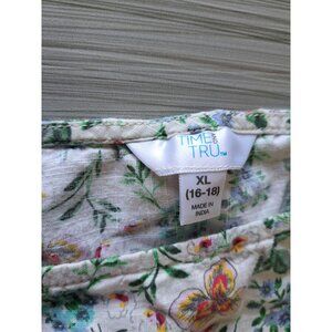 Floral Bell Sleeve Top Time & Tru XL Cotton Lightweight Women Summer Natural