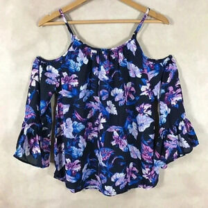 7 SEVEN SISTERS Navy Floral Printed Bell-Sleeved Cold-Shoulder Blouse