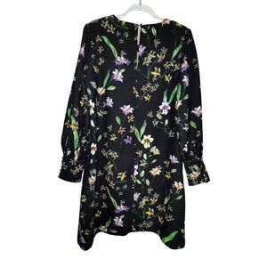 Floral Black Long-Sleeve Dress By H&M Size 14 Boho Hippie Classic Cute Large