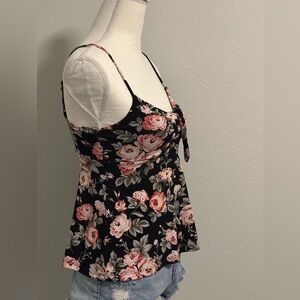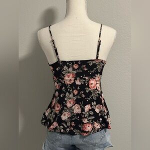 Floral Black Spaghettis Strap Flowy Top Shirt Blouse Size Small
