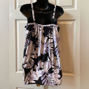 Floral Black, White and Lavender Tankini Top EUC size 2XL