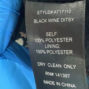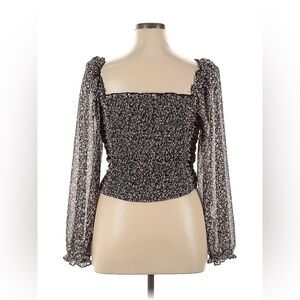 Long sleeve black floral top with smocking. Sleeves and shoulders are slightly poofy Style AT17110 black wine ditsy