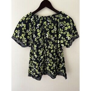 Chic and stylish women's top featuring a vibrant floral pattern. Perfect for any occasion, this black and green top adds a touch of elegance to your wardrobe.
