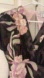 Sofia Vergara Elegant women's dress featuring a beautiful floral design in black and lavender with velvet black accents, lavender under layer. Beautiful cut out in back. Perfect for any occasion. Worn once