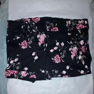 Stylish black shorts with pink floral design. Perfect for casual outings.