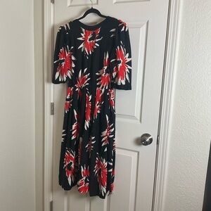 Elegant women's dress featuring a striking black and red floral pattern. Perfect for any occasion.