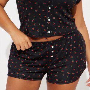 Floral Bloom Pointelle PJ Short Set - Black/Red (Size 3x, fits like 1x/2x)