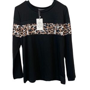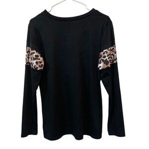 Floral Blooming Cotton Blend Long Sleeve L leopard pattern detail black Small