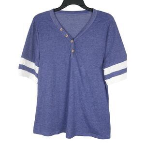 Floral Blooming Women's V-neck Button accent T-shirt L