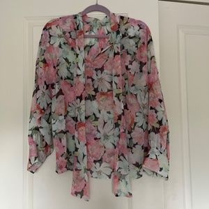 Worn only once It’s semi sheer Has tying bow in the back Smoke free & pet free house