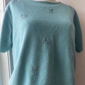 Tagged an XL 16/18 . Kathy Lee brand and 100% acrylic. Beautiful little details . Smoke free and pet friendly home 💕