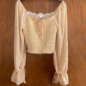 Worn once! In perfect condition. Can be worn on or off the shoulder. Stretchy material. Ties on both sleeves.