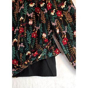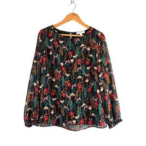 Floral Blouse Black Multi Color Nine West S Long Sheer Sleeve Lined Body Career
