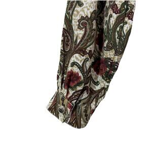 Beautiful floral and paisley pattern in rich colors: Burgundy or dark cherry red, olive green, tan, dark mocha brown