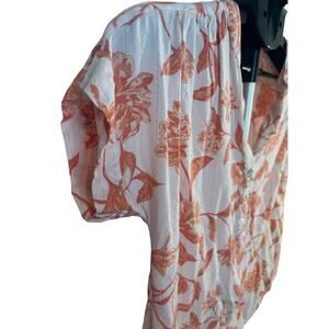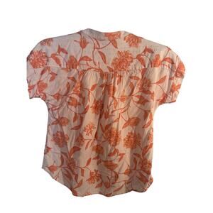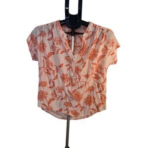 Floral Blouse Women’s Medium Button Front Short Sleeve Top Pink Orange