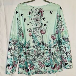 Floral Blouse with Crochet Neckline- Large