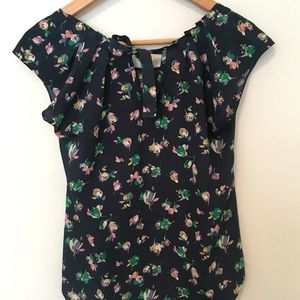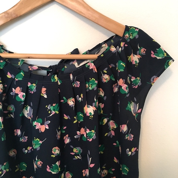 This sweet little blouse is unique and feminine, with a pleated neckline that ties in the back. As you can see in a couple of the photos, the brand tag has been removed, but the sizing is still clear. This XS has a relaxed cut that would also fit a Small.