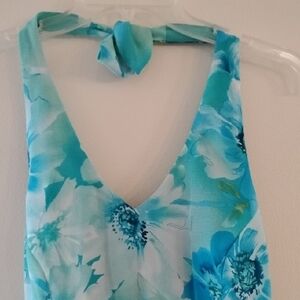 Embrace elegance with this stunning floral blue halter dress. Perfect for any occasion, it offers a blend of style and comfort.