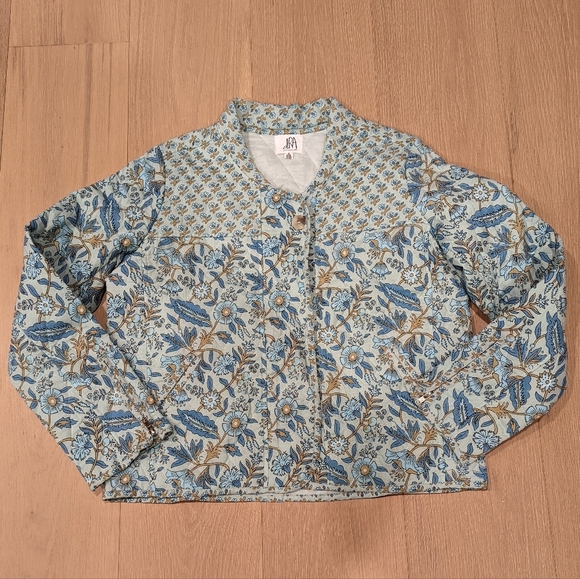 Stylish floral jacket in a beautiful blue hue. Perfect for adding a touch of elegance to any outfit.