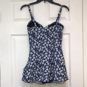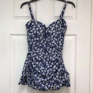 Dive into style with this elegant floral blue one piece swimsuit. Perfect for a chic beach look.