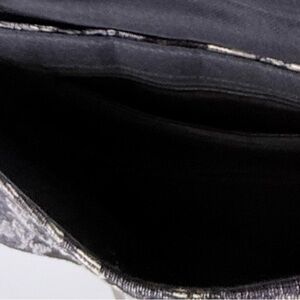 This Floral Blue and White Lace Rectangular Purse Shoulderbag has a fold over snap closure, making it convenient and secure for various occasions such as travel, parties, casual outings, formal events, workwear, and business meetings. The medium-sized purse features a beautiful blue and white floral lace exterior with a matte finish, complemented by silver hardware. The bag has a rectangular shape with a width of 13 inches and a depth of 3 inches, with a shoulder strap in the same blue and white color with a strap drop of 9 inches. The interior is lined with a black fabric, providing a stylish and versatile accessory for any woman's wardrobe.