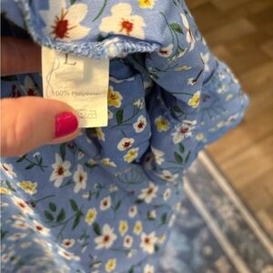 Charming blue wrap dress with a floral pattern. Perfect for casual outings.