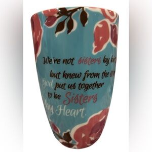 Beautiful mug with pink floral design on a blue background. Perfect for enjoying your favorite beverage.