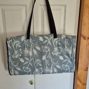 Stylish garment bag with a floral pattern. Features a blue and white design. Perfect for travel or storage. temple bag
