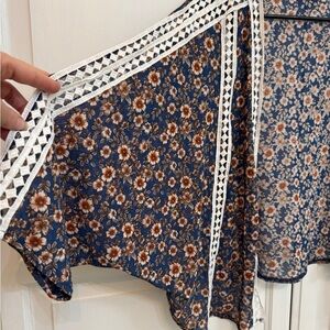 Embrace elegance with this floral blue and white cardigan. Perfect for layering, it adds a touch of sophistication to any outfit. Size M EUC