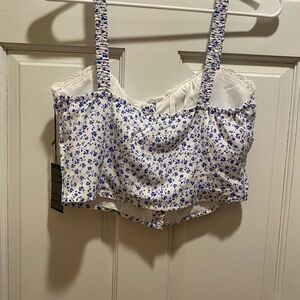 Floral Blue and White Women's Top