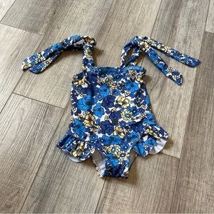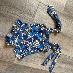 Floral Blue and Yellow Kids One-Piece Swimsuit Blue Floral Tie Strap Skirt 9-12M
