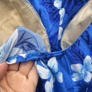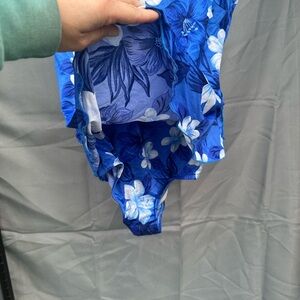 This vibrant blue womans one piece swimsuit features a beautiful floral design, perfect for summer fun. Crafted for comfort and style, it's a must-have for any swimwear collection.